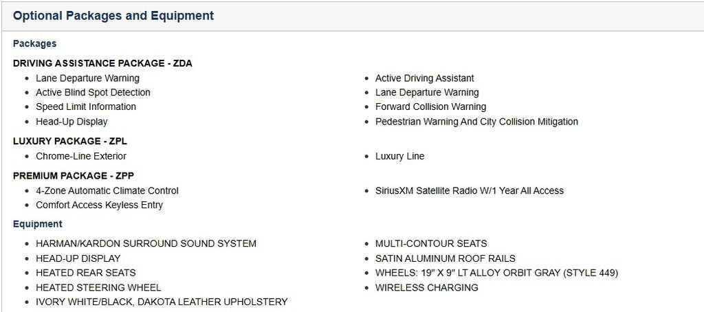 The Driving Assistance Package elevates your driving experience with cutting-edge technology, including Lane Departure Warning, Active Blind Spot Detection, Speed Limit Information, Head-Up Display, and Active Driving Assistant. The Premium Package adds even more convenience with 4-Zone Automatic Climate Control and Comfort Access Keyless Entry.