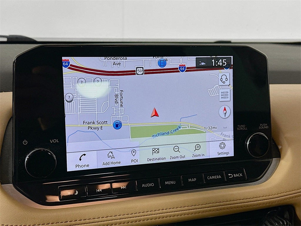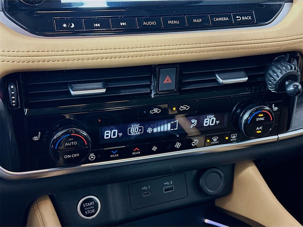 - Radio: AM/FM NissanConnect w/Navigation -inc: Nissan door to door navigation w/3D building graphics and satellite imagery featuring online POI search and online premium traffic information, SiriusXM Traffic, SiriusXM Travel Link, 9" color display w/multi-touch control, NissanConnect featuring Apple CarPlay and Android Auto, SiriusXM Satellite Radio, 2 illuminated USB connection ports (1 type-A, 1 type-C), Bluetooth® hands-free phone system, streaming audio via Bluetooth®, hands-free text messaging assistant